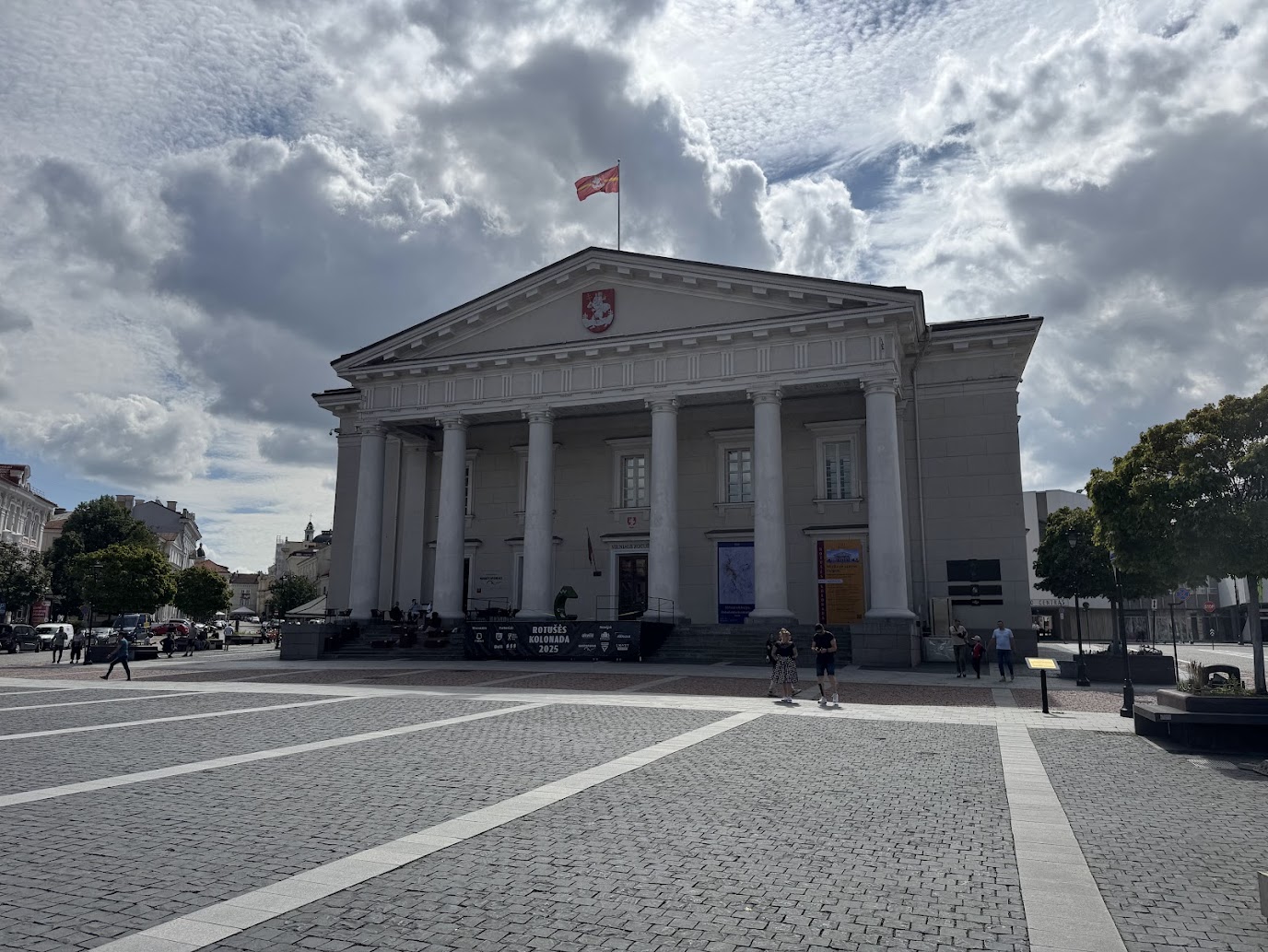 Samotná budova radnice, která náměstí dominuje, je pak ukázkovou prací klasicismu. Její dnešní podobu jí na konci 18. století vtiskl nejvýznamnější litevský architekt Laurynas Gucevičius. Ten nový objekt doslova „oblékl“ na starší zdivo poškozené požárem. Pod anticky vyhlížejícím portikem se tak skrývají gotické sklepy a fragmenty starších zdí, což z radnice činí němého svědka celé historie města.