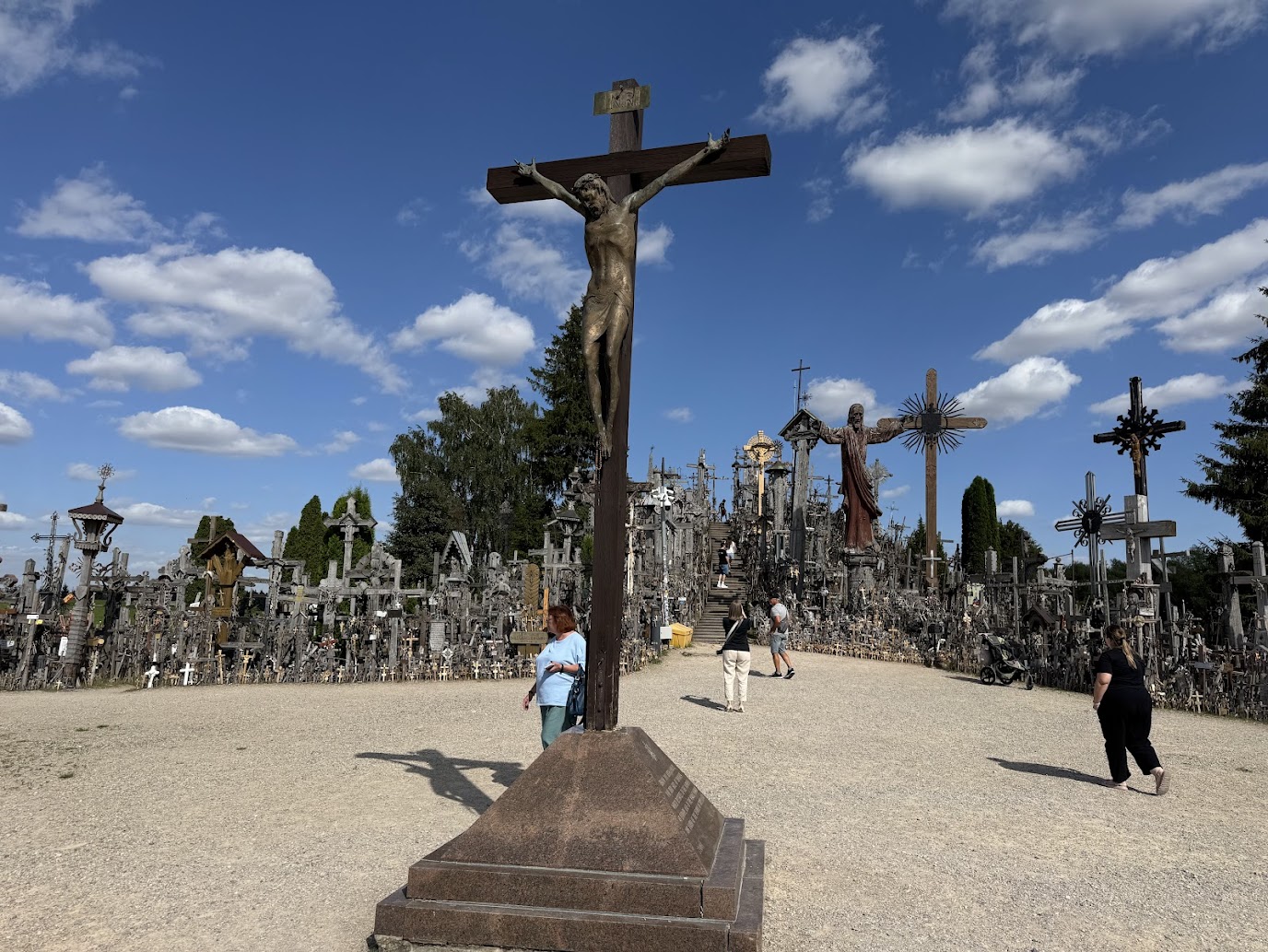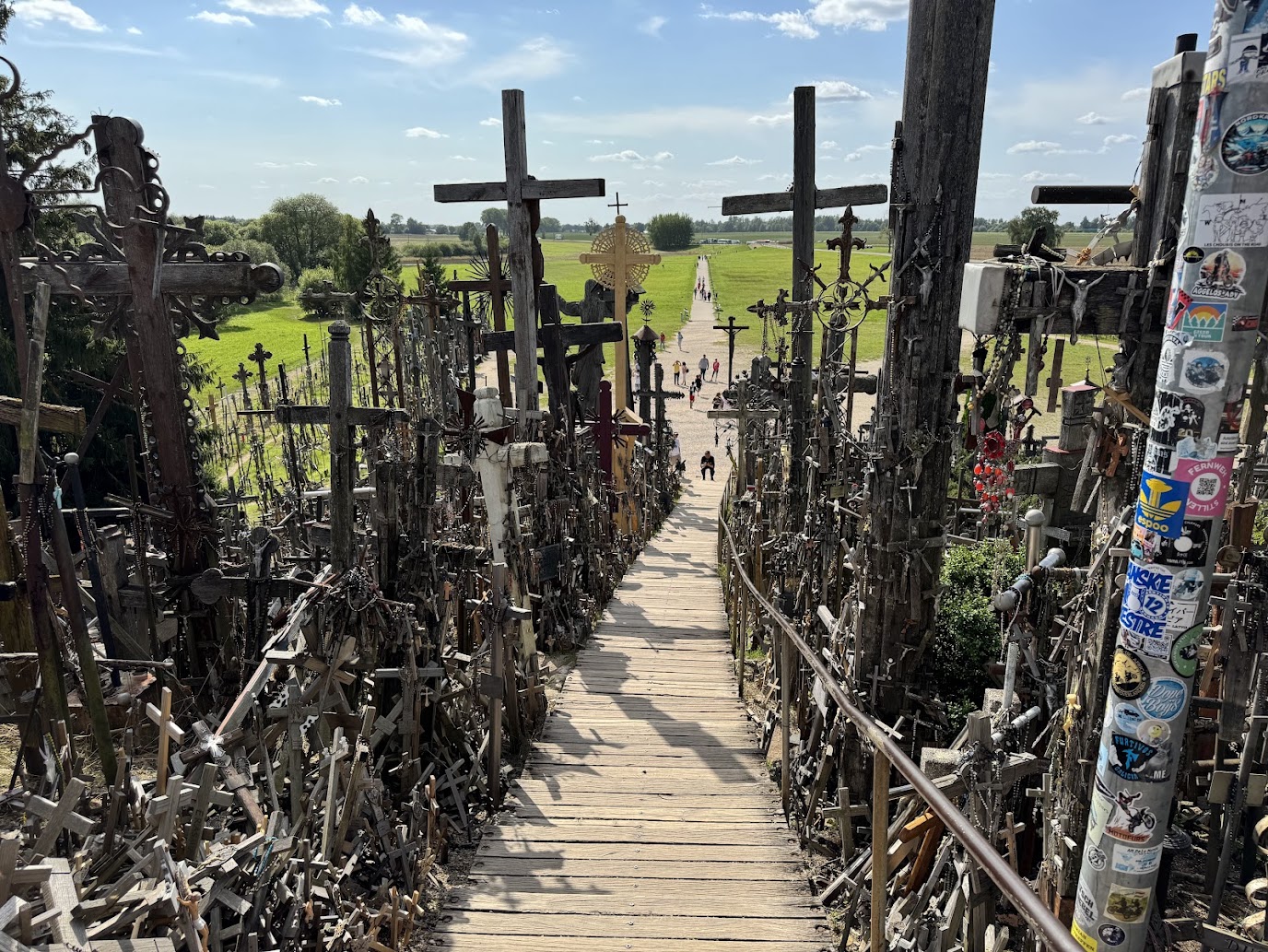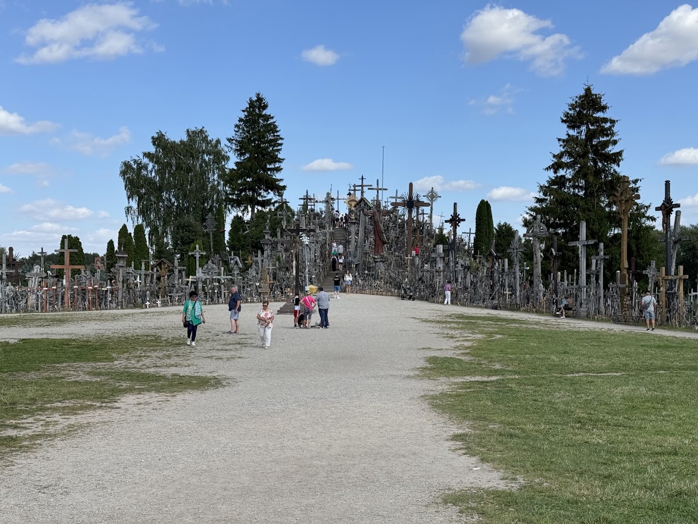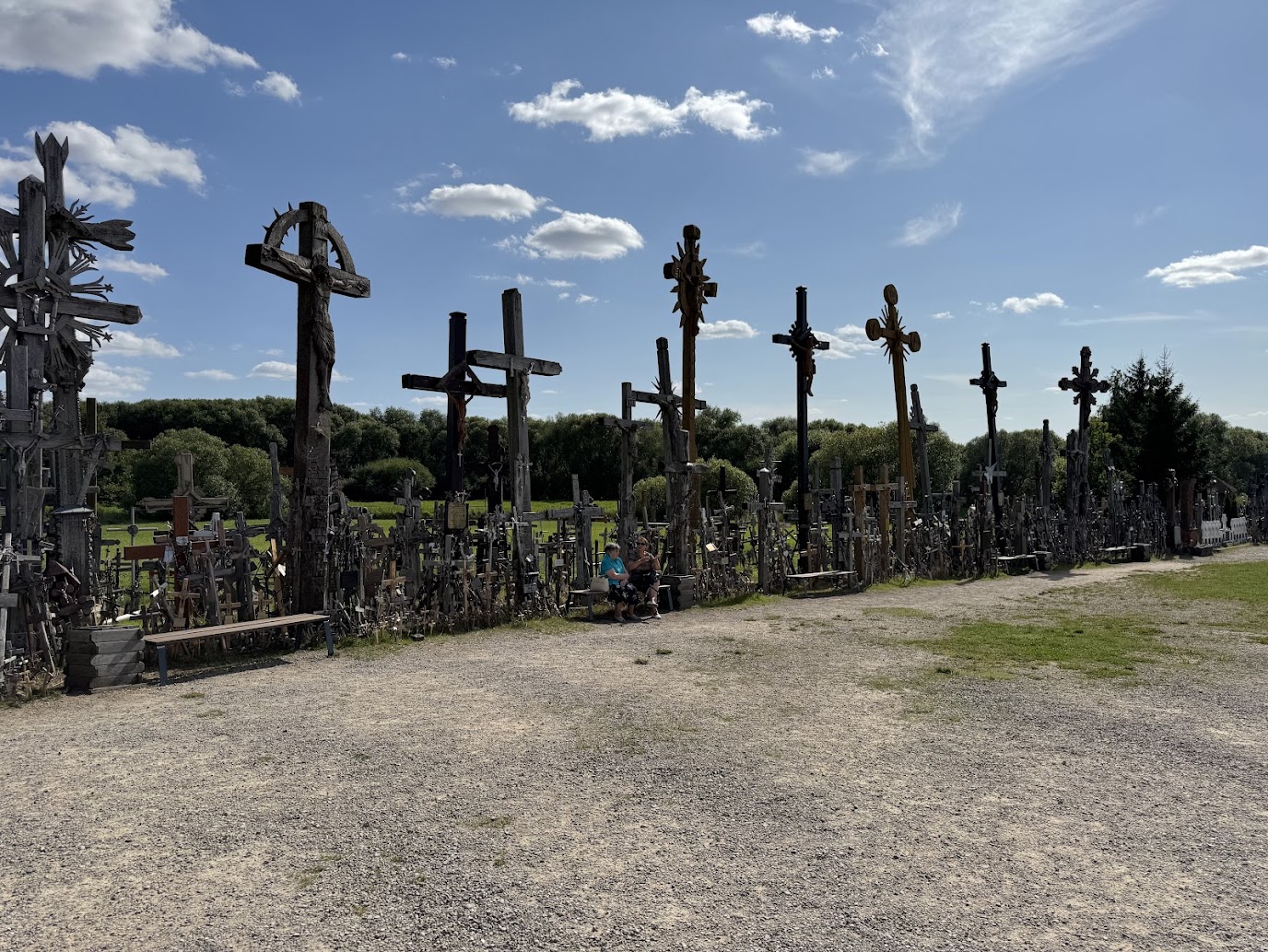 Ve městě očividně probíhala rekonstrukce hlavního tahu, kvůli které se téměř všude tvořily pomalu jedoucí kolony. Závěrečných 16,5 kilometru nám tak trvalo dlouhých čtyřicet minut. Auto jsme odstavili na oficiálním parkovišti, kde zrovna nefungoval parkovací systém, takže jsme to měli zadarmo (i když kdo ví, zda z Litvy nepřijde nějaký dopis). Pak nás čekala malá procházka k Hoře křížů.