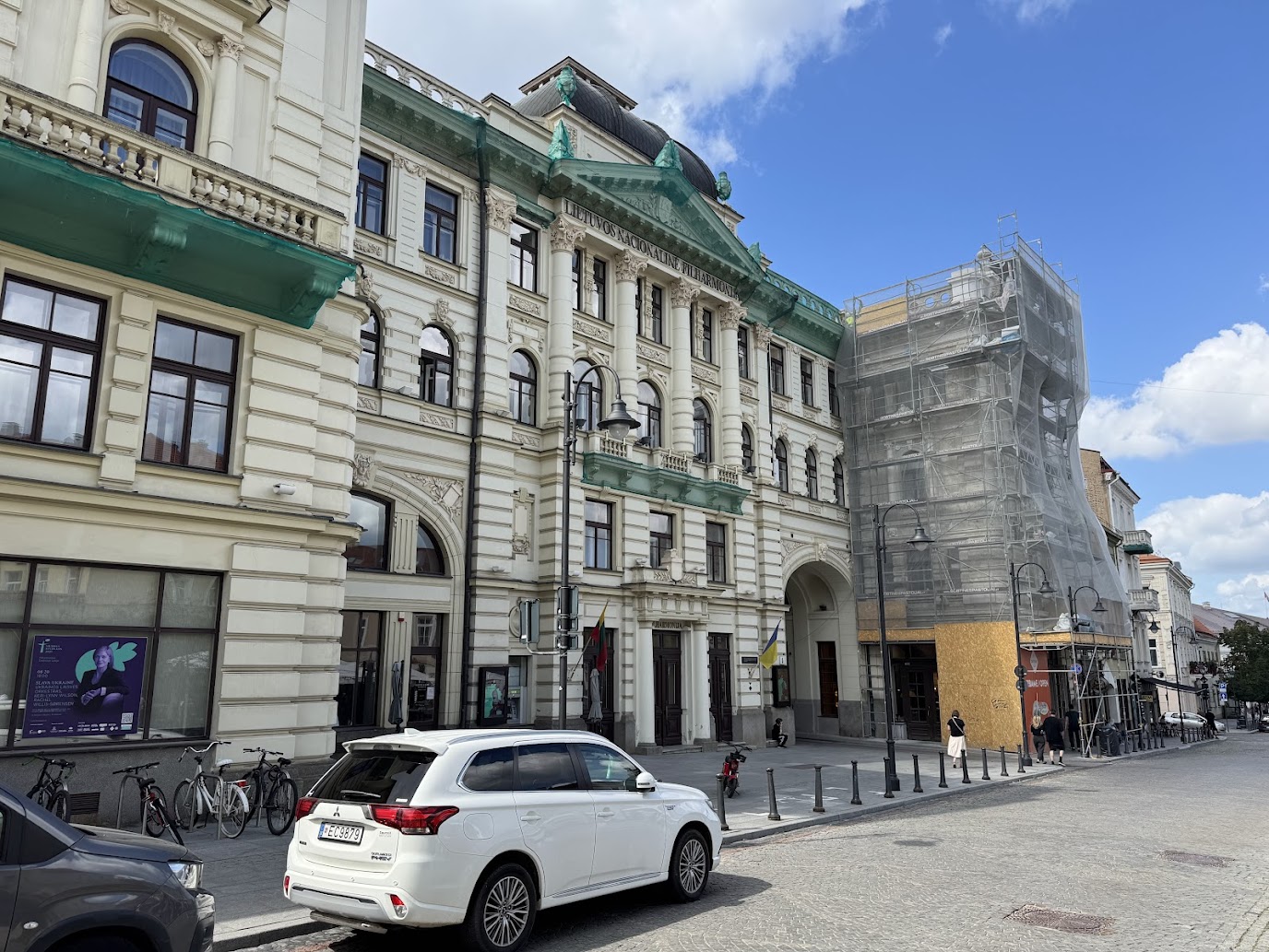 Jako další nás zaujala budova Litevské národní filharmonie (Lietuvos nacionalinė filharmonija). Ta na první pohled zaujme svou zdobnou fasádou ve stylu historismu. Postavena byla na samém počátku 20. století jako Městská koncertní síň, tedy místo určené především pro kulturní vyžití tehdejší společenské elity. Její sály a foyer tak byly od počátku navrženy s důrazem na eleganci a reprezentativní dojem, který si ostatně zachovaly dodnes a právem patří k architektonickým klenotům města.