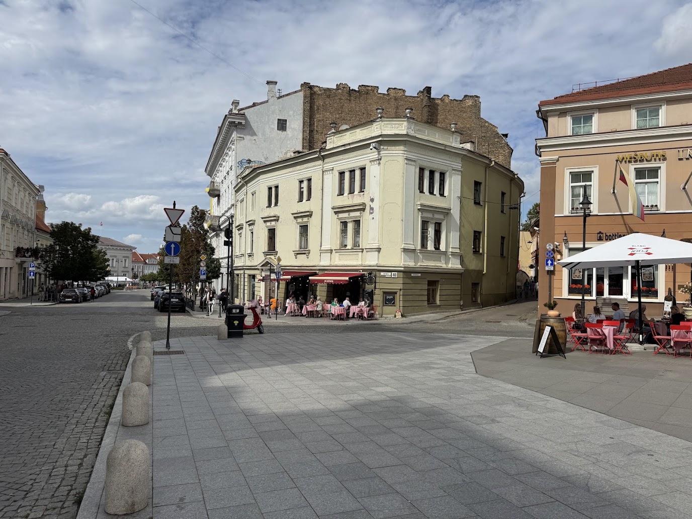Následně jsme si vyfotili nejužší ulici ve Vilniusu. Ta ale pro nás byla trochu zklamáním – na rozdíl od podobné ulice v Praze, kde provoz pěších musí řídit semafor, by se v této dva štíhlí lidé bez problémů vyhnuli.
