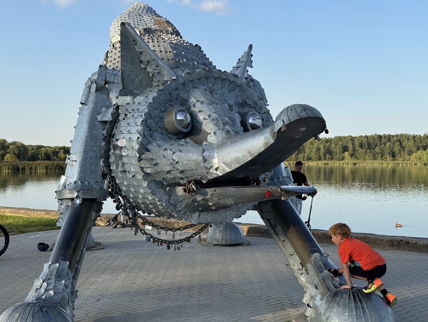 Na břehu jezera narazíte na stvoření jako z moderní bajky. Je jím monumentální socha Železné lišky, která se svými rozměry – délkou téměř patnáct metrů a váhou sedmi tun – stala nepřehlédnutelným symbolem města. Dílo designéra Viliuse Puronase bylo od počátku zamýšleno jako nový městský mýtus, který by propojoval industriální současnost s odvěkou chytrostí, již liška symbolizuje.