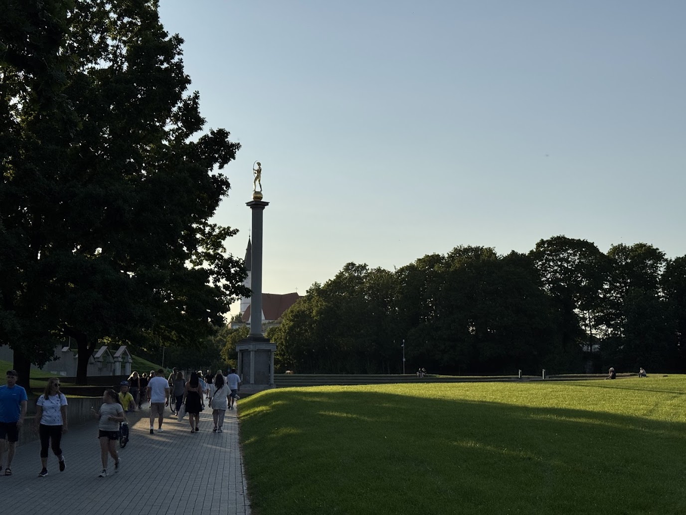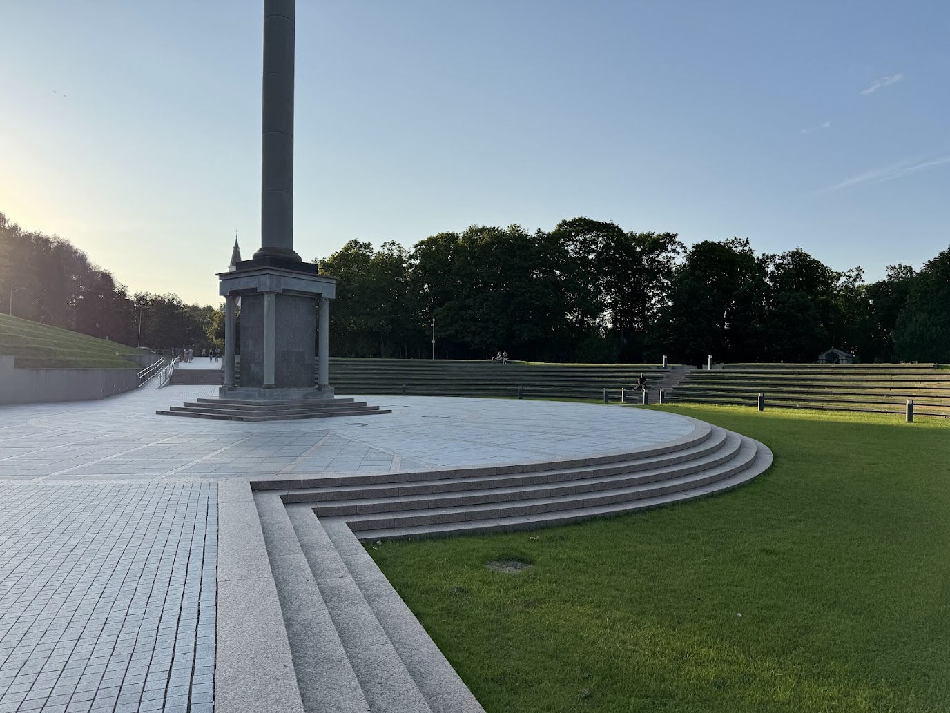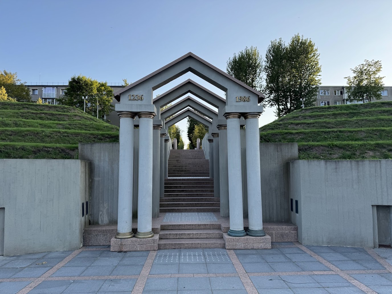 Naší poslední zastávkou bylo náměstí Slunečních hodin, které je jedním z nejoriginálnějších veřejných prostorů, jaké jsem kdy viděl. Nejde jen o prostranství s pomníkem, ale o jeden obrovský, funkční měřič času. Dominantou je osmnáct metrů vysoký obelisk, který vrhá stín na ciferník tvořený číslicemi 12, 3 a 6, zapuštěnými do země. Celý architektonický komplex byl odhalen v roce 1986 k 750. výročí bitvy u Saule.