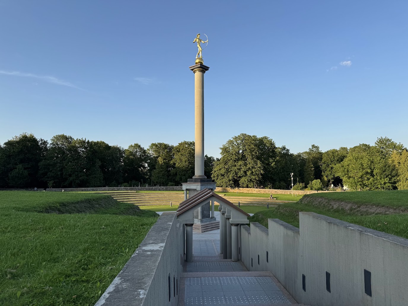Zdrželi jsme se asi hodinku, ale jak je u nás zvykem, nemínili jsme trávit podvečer lelkováním na ubytování. V půl sedmé jsme tedy vyrazili nejprve pro jednu keš k místnímu mezinárodnímu letišti a následně pro dalších pár kousků do centra. Jedna z kešek nás dovedla k prostému, ale o to působivějšímu památníku obětem holocaustu. Právě zde bylo za druhé světové války v ghettu natěsnáno přes pět tisíc lidí, kteří byli následně deportováni do koncentračních táborů nebo zavražděni v nedalekých lesích. Památník tak označuje hranici mezi někdejším světem a peklem, které zde nacisté vytvořili.