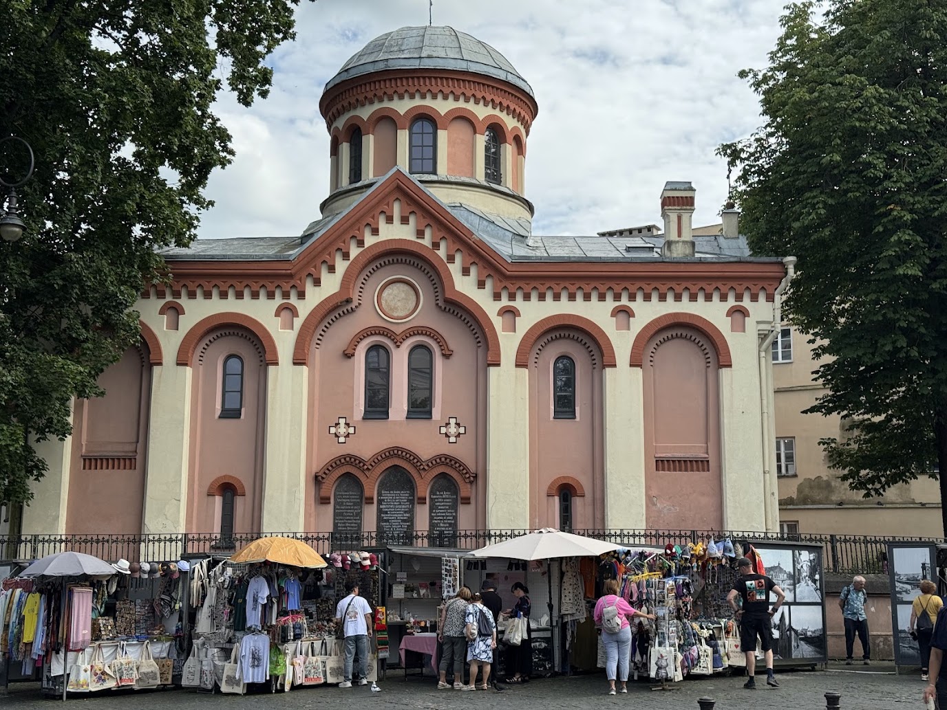 Jako první nás zaujal katolický kostel Všech svatých. Při pohledu na něj by leckoho mohla napadnout myšlenka na italské baroko, a nebyl by daleko od pravdy. Tento chrám, postavený na začátku 17. století pro řád karmelitánů, skutečně nese typické znaky tohoto zdobného stylu. Jeho historie je však stejně pohnutá jako dějiny celé Litvy. Během napoleonských válek sloužil jako polní nemocnice, carské úřady klášter zrušily a Sověti dílo zkázy dokonali, když z chrámu udělali sklad potravin.